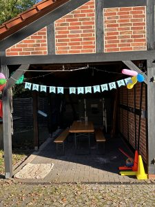 Die Kids werden zu mir auf den Hof gebracht. Da haben wir genug Platz zum Spielen, Toben und Feiern haben!